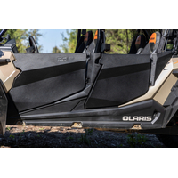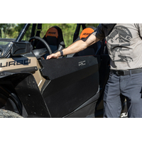 Thumper Fab Polaris Ranger Half Doors are constructed from solid steel from top to bottom. Rubber trim around all edges provides a rattle free seal and dual latching handles promise solid door closing every time. These are easily bolted-on to your Polaris Ranger CREW and add great style and protection from trail debris. Manufactured in the USA!